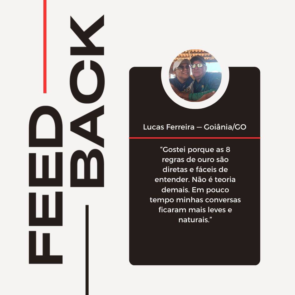 Diferente de muitos conteúdos que ficam apenas na teoria ou na explicação de conceitos, o Carisma Natural utiliza uma abordagem direta e aplicável, com exercícios claros e exemplos reais que permitem colocar em prática, desde o início, as 8 Regras de Ouro do carisma no dia a dia.