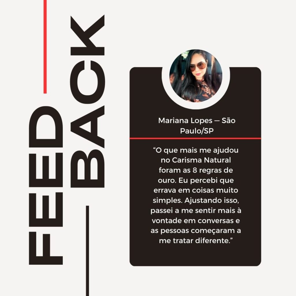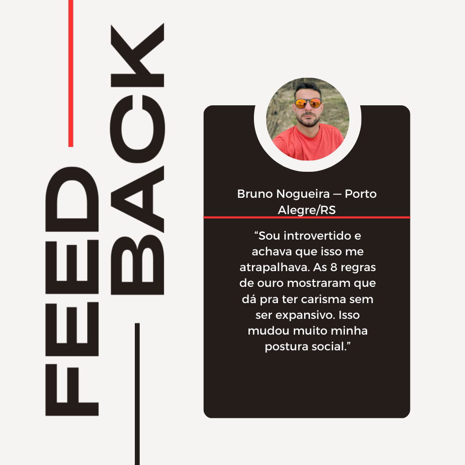 Na prática, isso significa que você não apenas entende o que é carisma, mas aprende como expressá-lo de forma natural e autêntica nas suas interações sociais. É um método pensado para gerar mudanças perceptíveis, de forma simples e progressiva.